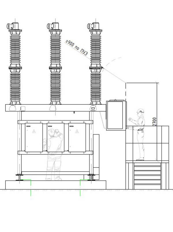 Пример можно увидеть на картинках. Производители высоковольтных выключателей размещают шкафы привода таким образом, что для обеспечения их безопасного обслуживания бывает сложно обойтись без ограждающих конструкций.